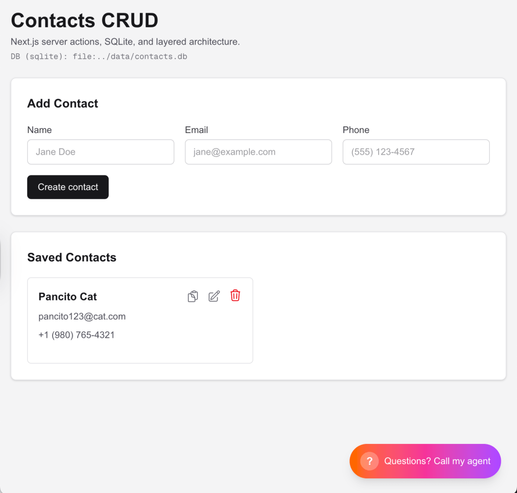 The sample application is intentionally simple: a CRUD contacts app.